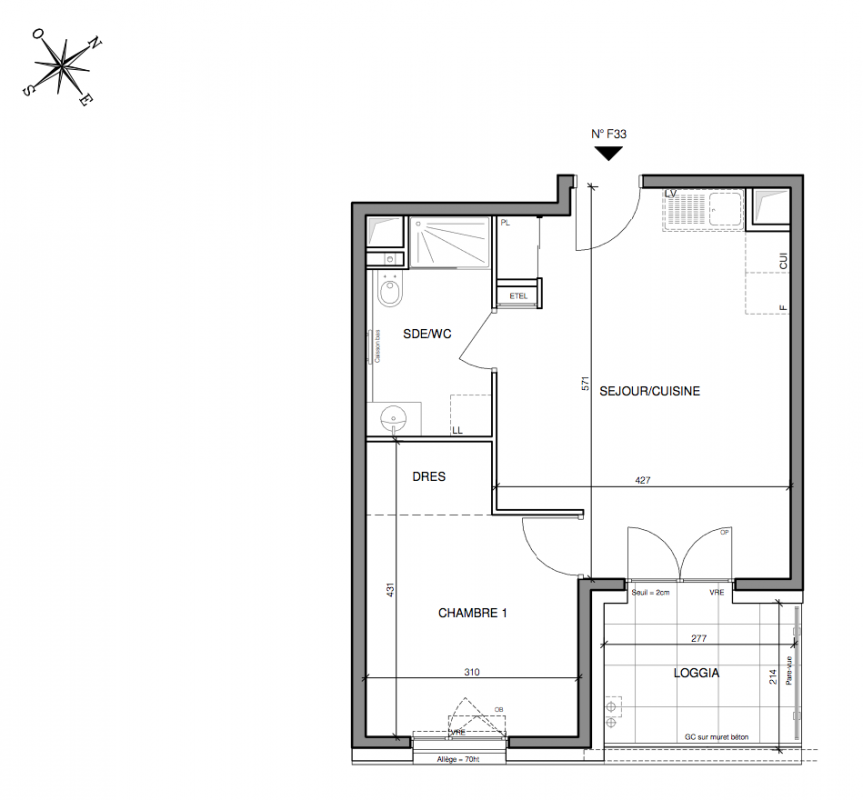 311 000€ Appt. T2 40.5m2 1er
