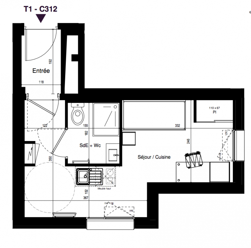 114 247€ Appt. Studio 17.91m2 1er