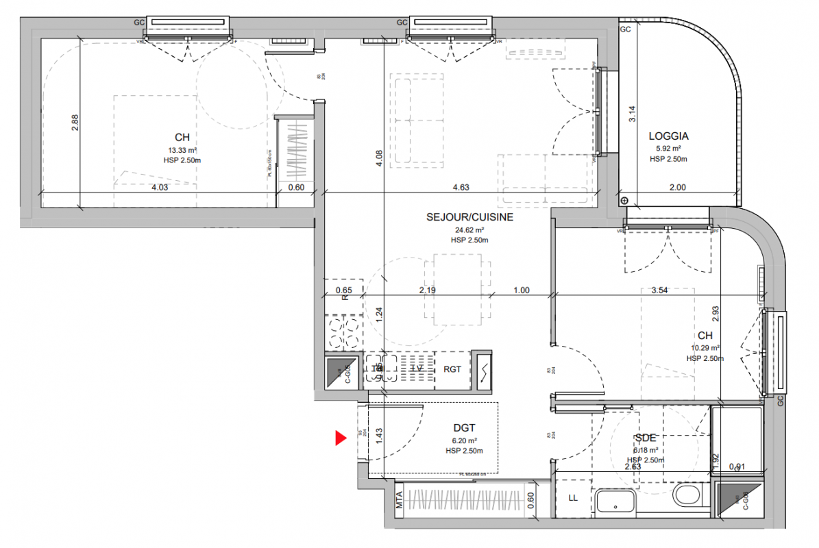 302 300€ Appt. T3 60.62m2 5ème