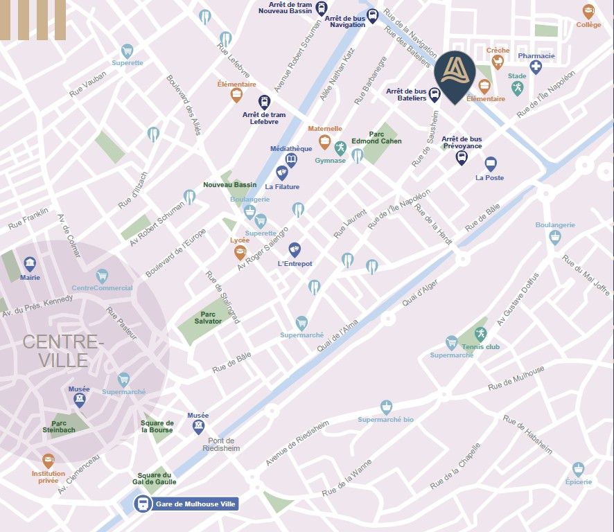 Achetez votre appartement neuf à MULHOUSE et emménagez immédiatement ! Et en plus avec la TVA réduite à 5,5%, devenez propriétaire de votre appartement neuf pour le même prix que votre loyer ! Découvrez votre future adresse "Programme neuf Mulhouse (68100)" à Mulhouse, une ville riche en patrimoine culturel et historique nichée au cœur de l'Alsace et proche des frontières suisse et allemande. Située à seulement 3 kilomètres du centre-ville et à quelques minutes de la gare de Mulhouse, la résidence associe le charme des bords de canal avec la proximité des infrastructures citadines. Vous y trouverez tous ce dont vous aurez besoin pour vous offrir une vie quotidienne active et agréable. Vous pourrez vous balader dans les ruelles animées du centre-ville ou le long de l'eau qui conduit directement au Nouveau-Bassin, quartier prisé pour les loisirs.La résidence "Programme neuf Mulhouse (68100)" est composée d'appartements du 2 au 4 pièces. Chaque appartement dispose d'un espace privatif : balcon, terrasse ou jardin privatif avec vue sur l'eau pour certains. Plusieurs arrêts de bus sont à proximité immédiate : ligne C6 Arrêt Bateliers à 200 m, bus ligne C5 Arrêt Prévoyance à 300 m ainsi que l'arrêt de tramway ligne 2 Nouveau Bassin à seulement 900 m vous permet de vous déplacer en toute simplicité. De plus, la gare de Mulhouse ainsi que l_A36 sont à 5 minutes en voiture, ce qui facilitera vos déplacements.Contactez vite un de nos conseillers pour découvrir tous nos appartements neufs à Mulhouse et pour concrétiser votre projet immobilier.
