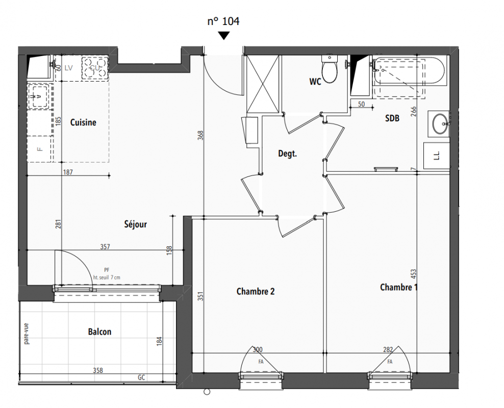 296 900€ Appt. T3 59.49m2 0-RDC