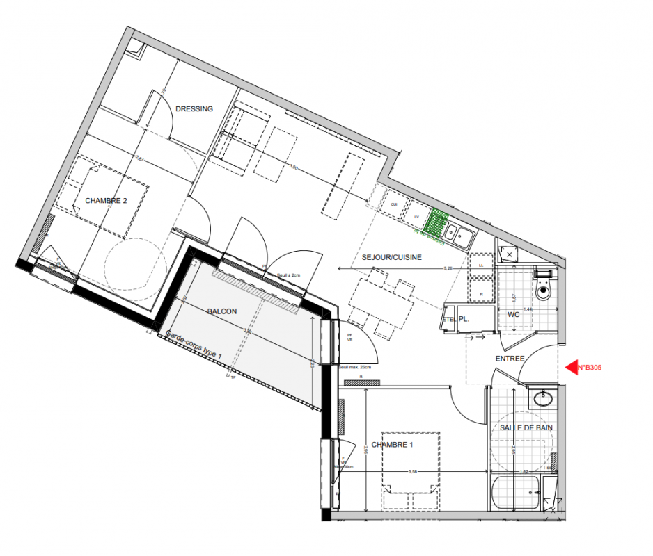 277 000€ Appt. T3 69.06m2 1er