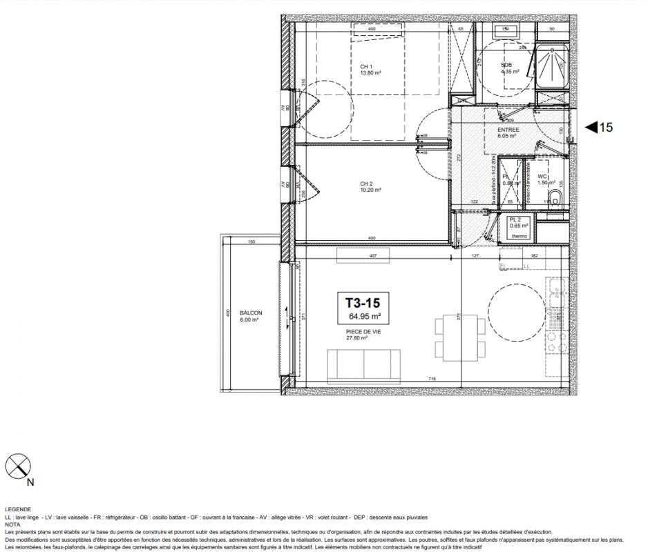 290 000€ Appt. T3 64.95m2 2ème