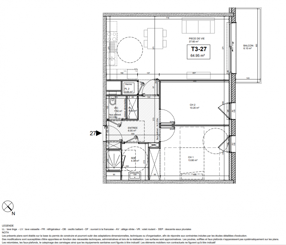 286 000€ Appt. T3 64.95m2 1er
