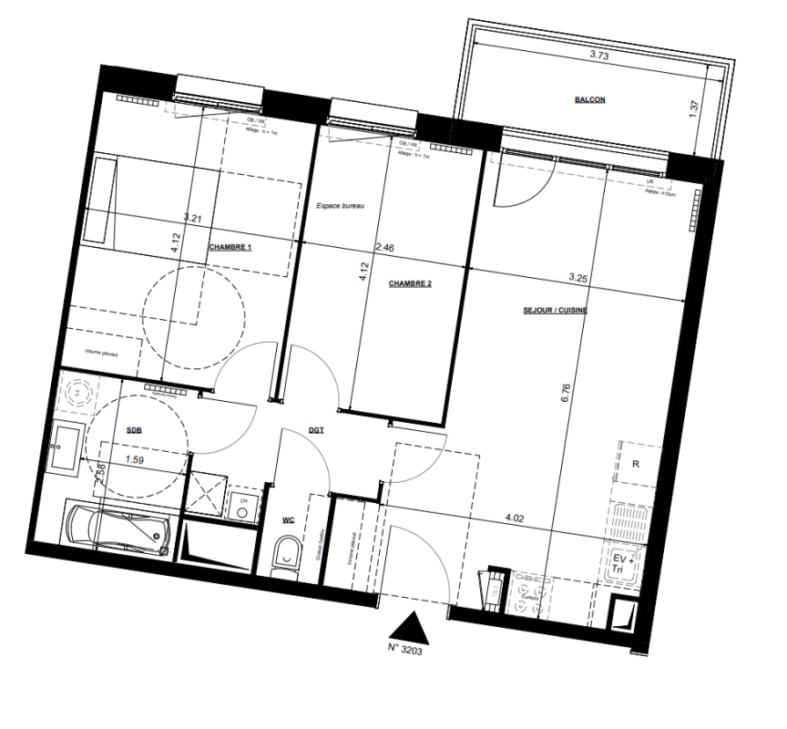 | Voir | Disponible | 216 114€ | 3103 | Appt. | T3 | 58.68m2 | 1er | Disponible | 216 114€ | Voir |