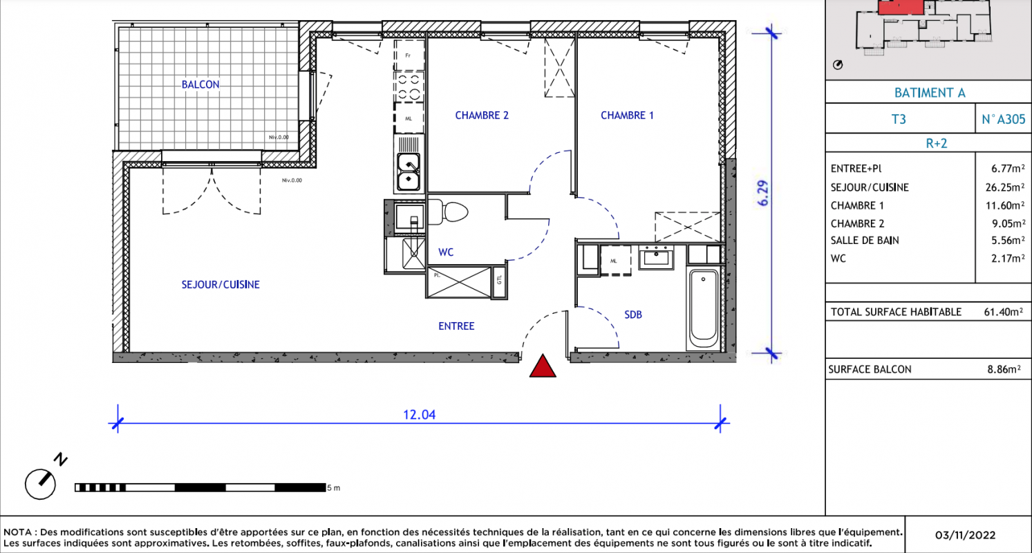 | Voir | Disponible | 186 944€ | A106 | Appt. | T3 | 61.93m2 | 1er | Disponible | 186 944€ | Voir |