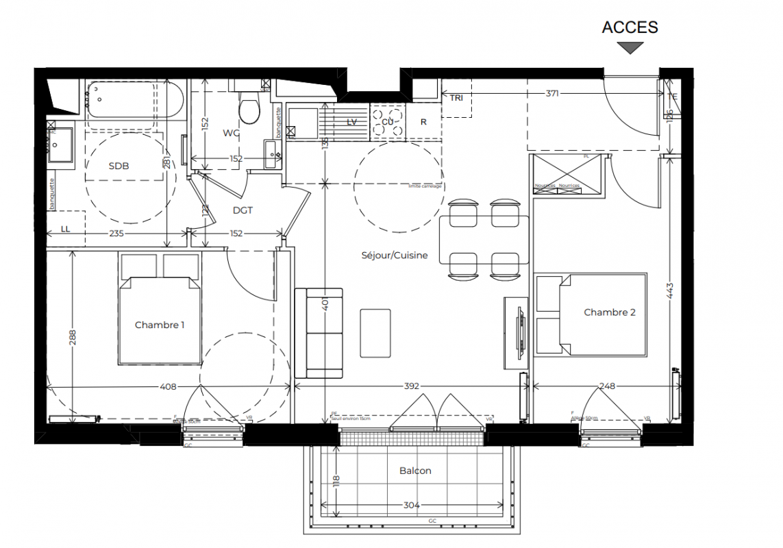 387 000€ Appt. - 57.2m2 2ème
