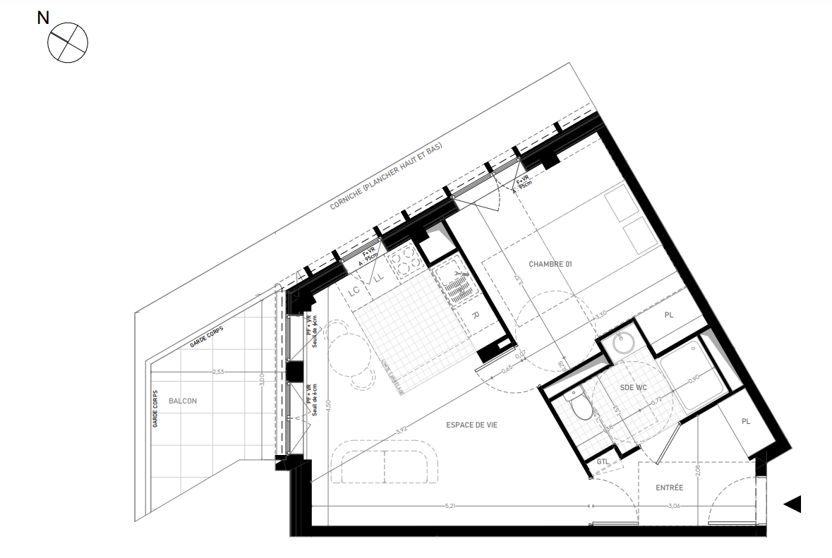 303 000€ Appt. T2 46.32m2 4ème