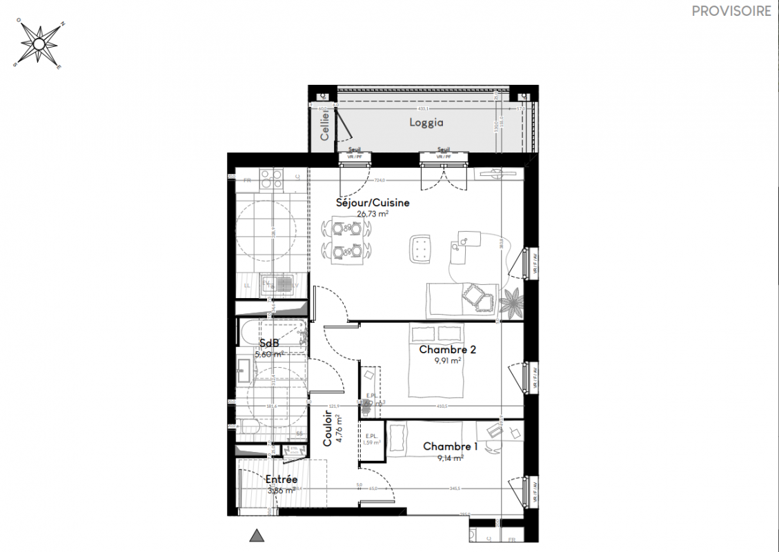 309 900€ Appt. - 60.09m2 3ème