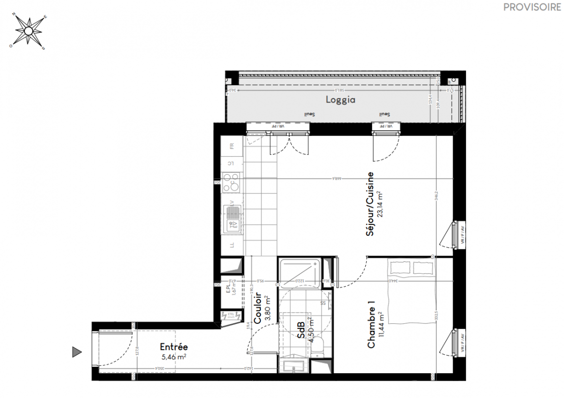 244 900€ Appt. T2 44.37m2 2ème