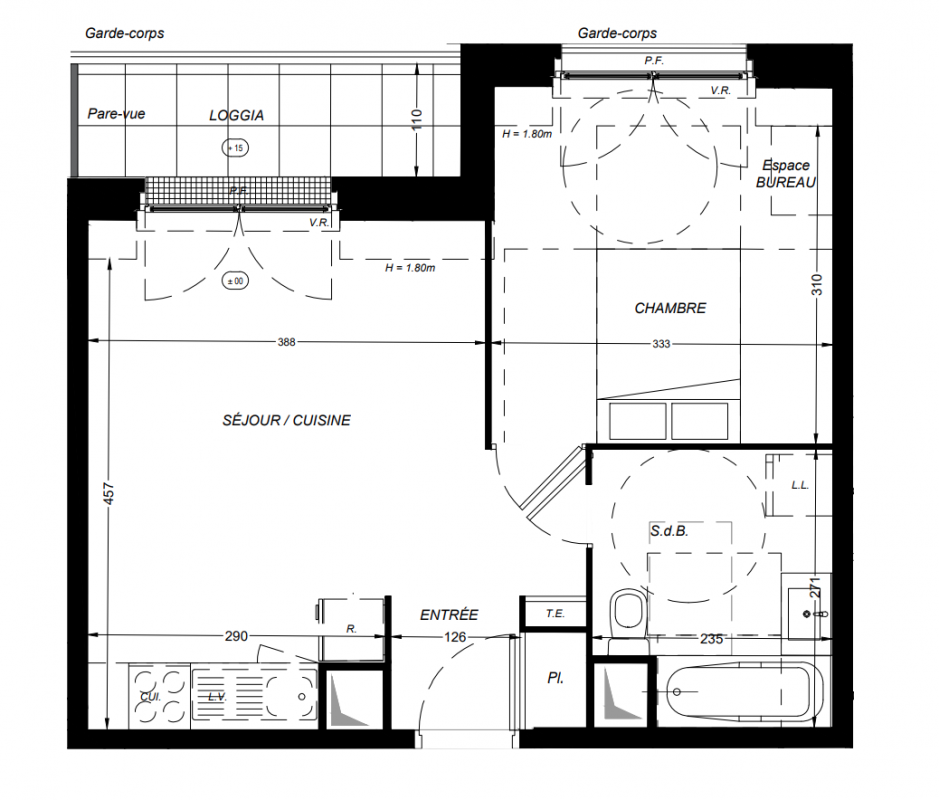 224 000€ Appt. T2 43.3m2 0-RDC