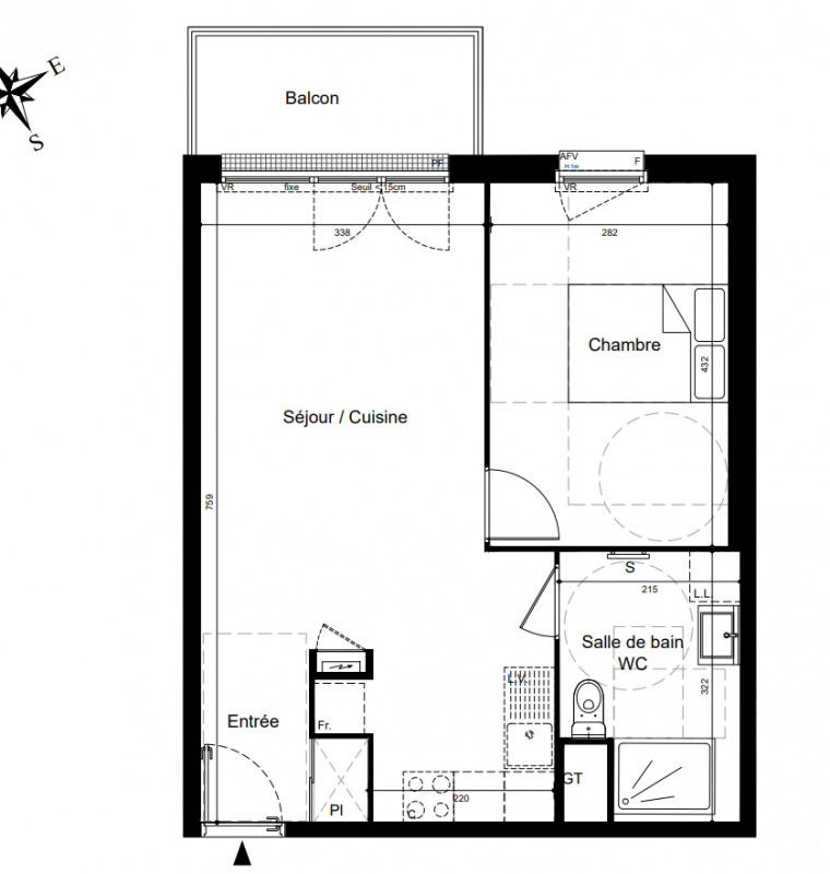 193 365€ Appt. T2 44.2m2 2ème