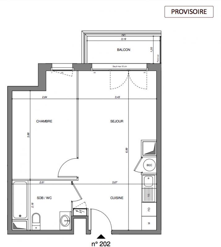263 900€ Appt. T2 41.21m2 2ème