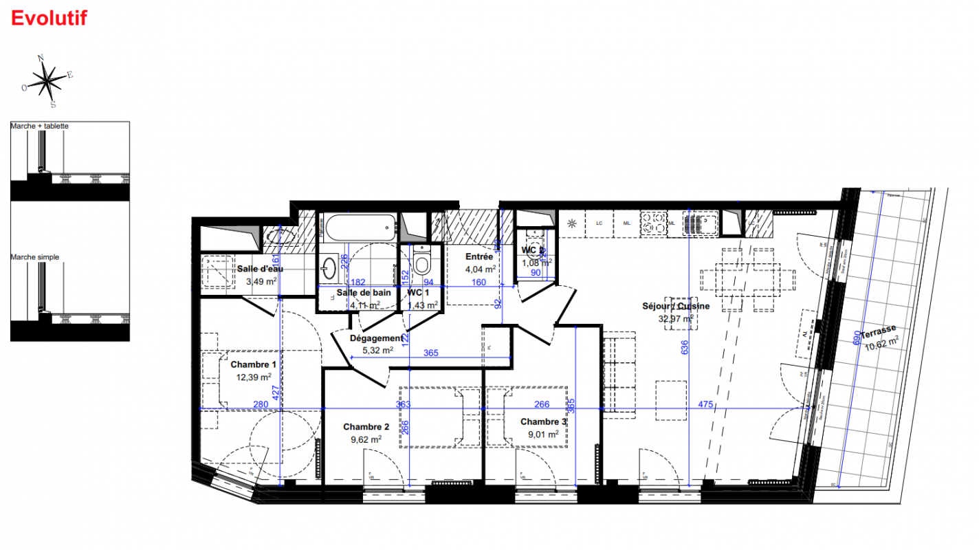 336 000€ Appt. T2 46.5m2 0-RDC