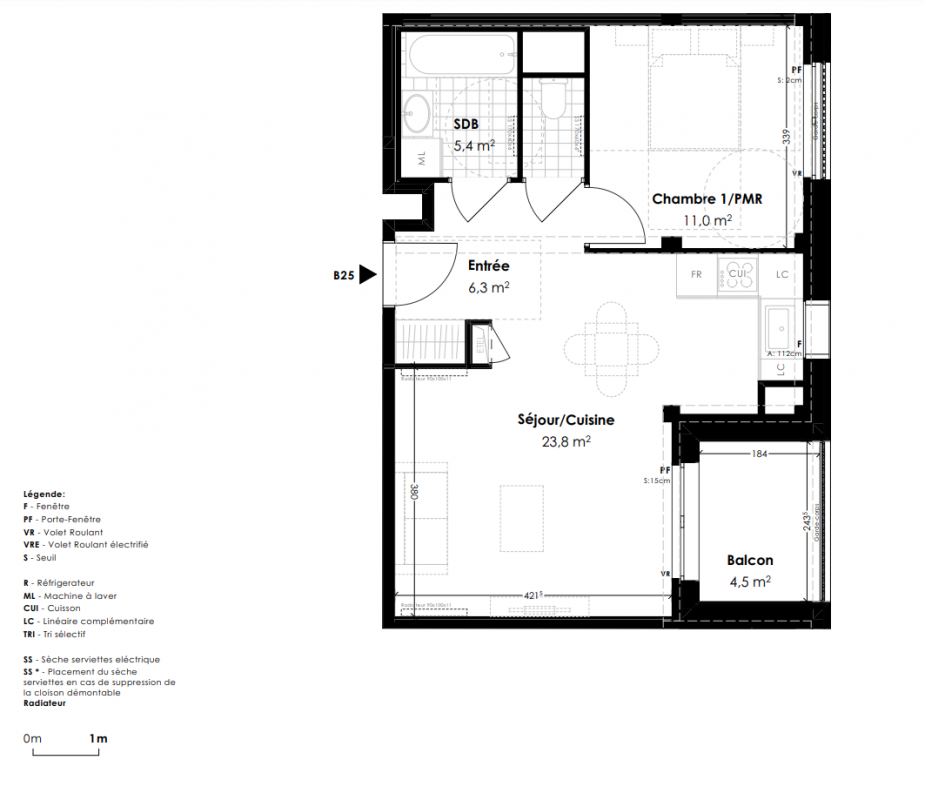 331 000€ Appt. T2 46.5m2 0-RDC
