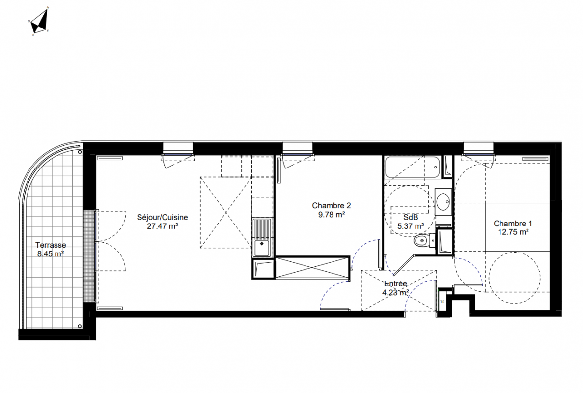 264 600€ Appt. T3 64.14m2 0-RDC