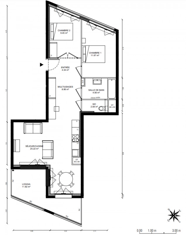 408 341€ Appt. T3 66.3m2 6ème