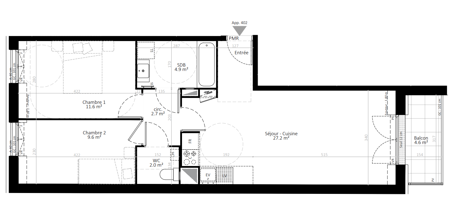 | Voir | Disponible | 294 483€ | 407 v1 | Appt. | T3 | 53.3m2 | 4ème | Disponible | 294 483€ | Voir |