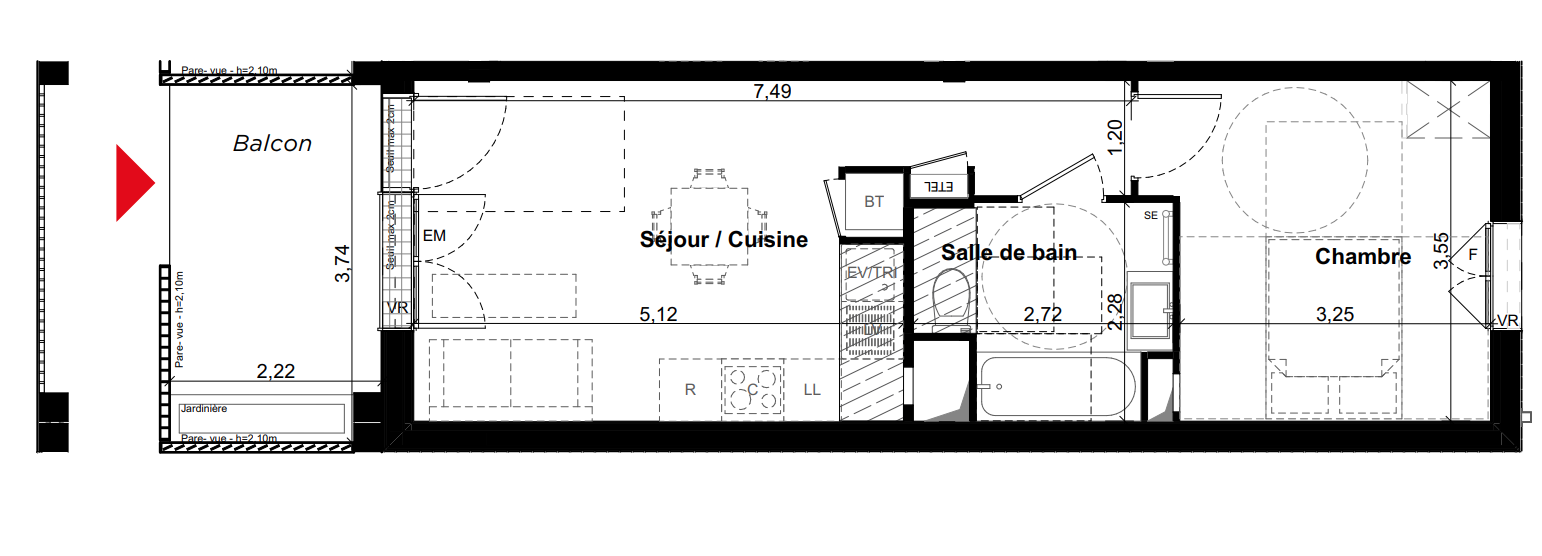 | Voir | Disponible | 173 900€ | B03 | Appt. | - | 37.66m2 | 1er | Disponible | 173 900€ | Voir |