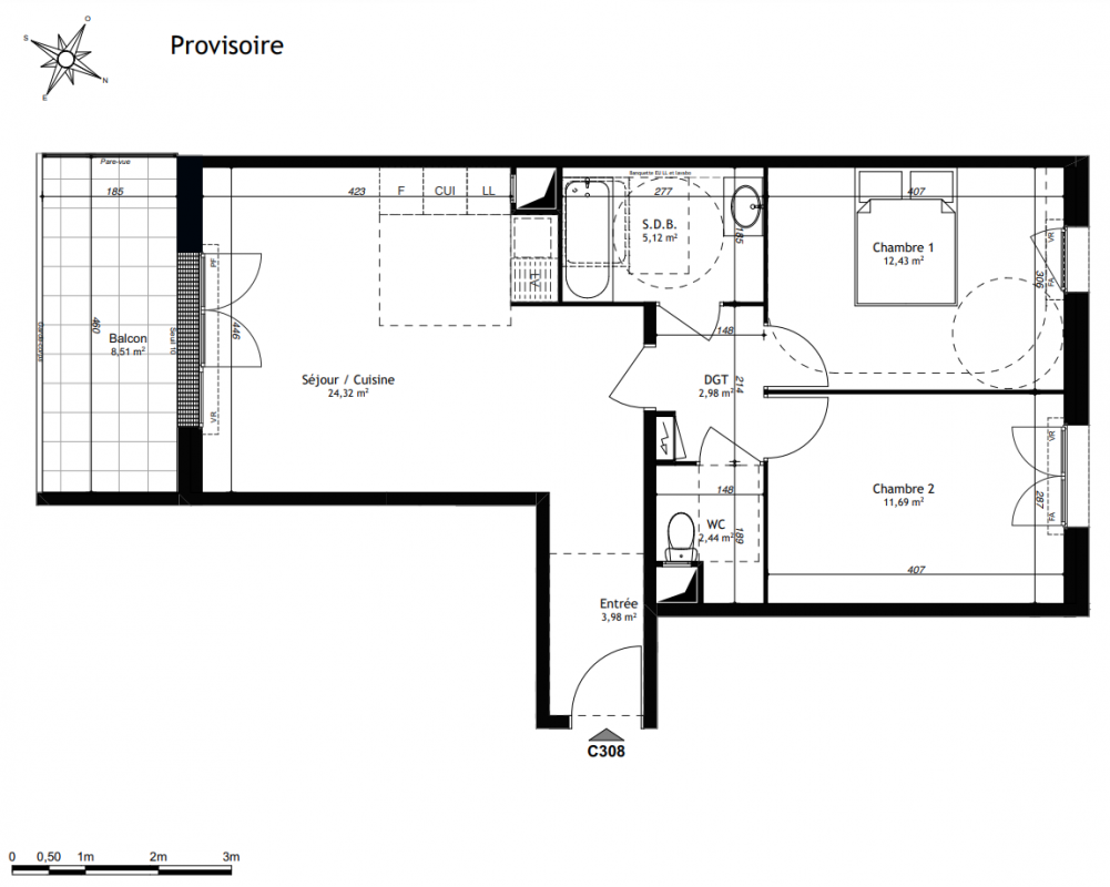 279 900€ Appt. - 58.48m2 3ème