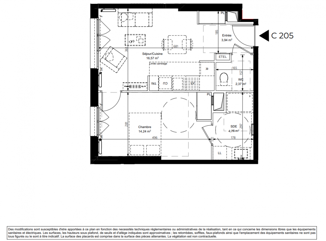 285 000€ Appt. T2 42.01m2 4ème