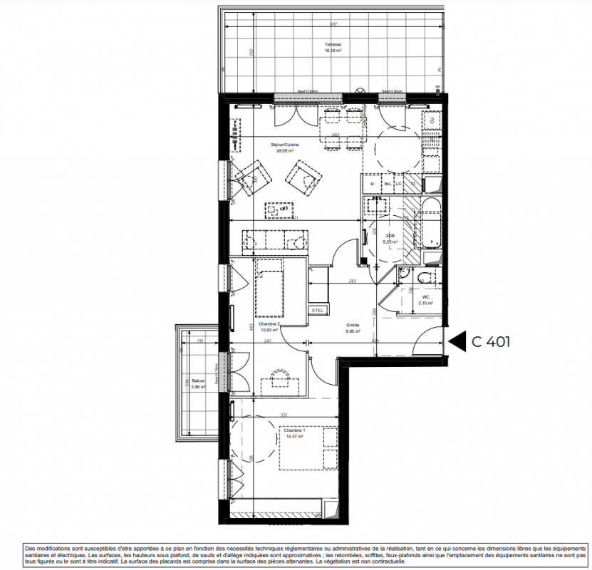 413 000€ Appt. T3 66.49m2 2ème