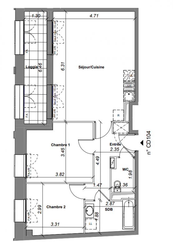 376 100€ Appt. T3 70.33m2 0-RDC
