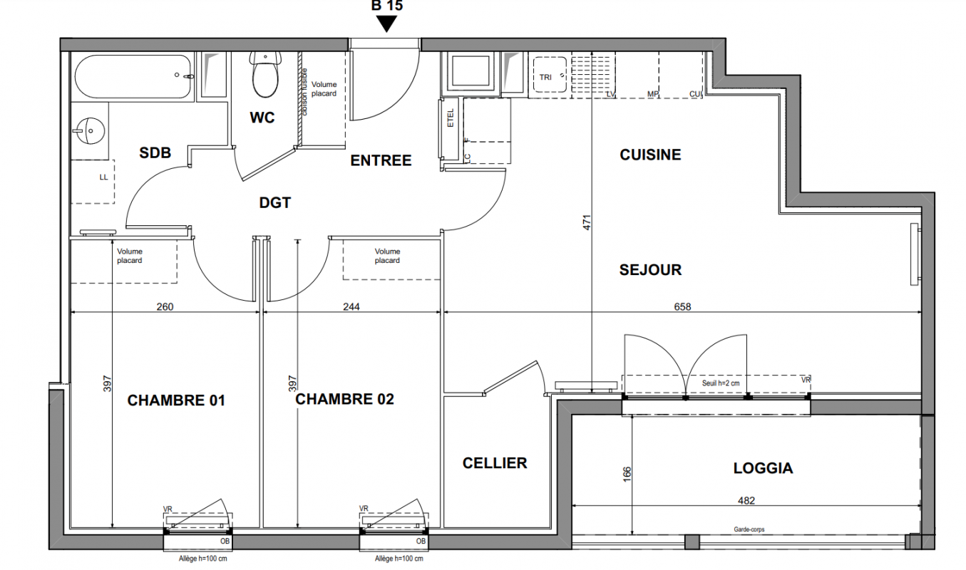 210 995€ Appt. T3 58.1m2 0-RDC