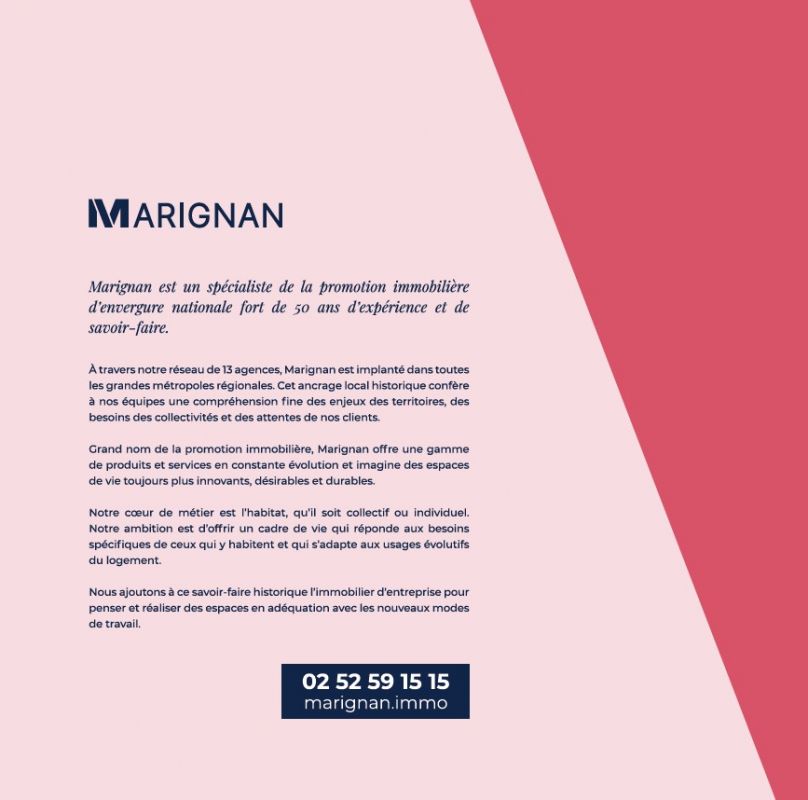BAISSE DE PRIX pour votre appartement neuf à NANTES du studio au 2 pièces ! Idéalement située à l’est de la ville, dans un quartier en devenir, « Programme neuf Nantes (44000) » offre un environnement attrayant et une qualité de vie optimale pour ses futurs résidents. La résidence bénéficie d’une localisation stratégique, offrant un accès facilité à tous les services et commodités nécessaires de la vie quotidienne. Les environs sont caractérisés par un mélange harmonieux de zones résidentielles et d'espaces verts, créant ainsi un environnement propice à la détente et à la tranquillité. Bienvenue dans votre future résidence moderne et lumineuse qui propose des appartements du studio au 4 pièces duplex. Chaque appartement a été pensé pour répondre à vos besoins avec des espaces généreux et fonctionnels. Les séjours, traversants et ouverts, profitent de la lumière naturelle tout au long de la journée, créant ainsi une atmosphère chaleureuse et conviviale. Les grandes baies vitrées permettent de profiter d'une vue dégagée sur les environs. Pour profiter pleinement des beaux jours et de l'extérieur, chaque appartement est doté d'espaces extérieurs privés tels que des balcons, des terrasses ou des jardins privatifs. Que vous souhaitiez un espace de vie intime ou des pièces spacieuses pour accueillir votre famille, notre résidence propose une variété de surfaces généreuses adaptées à vos besoins. Les duplex offrent un agencement sur deux niveaux, créant une séparation harmonieuse entre les espaces de vie et les espaces privés. De plus, notre résidence propose des prestations de qualité, alliant confort et modernité. Les matériaux et finitions ont été soigneusement sélectionnés pour créer un environnement esthétique et durable. En termes de transports, l’arrêt de bus « Basse Chênaie » est à seulement quelques pas de la résidence, l’arrêt de tramway ligne 1 « Souillarderie » à seulement 9 min à pied, le périphérique nantais se trouve à 2 min en voiture et une voie vélo viendra prochainement border la résidence. Par ailleurs, les amateurs d'espaces verts seront ravis de savoir que le quartier est entouré de parcs et de jardins, offrant des lieux de détente et de loisirs en plein air. Les berges de la Loire, à proximité, offrent de magnifiques promenades au bord de l'eau, propices à la relaxation et à la pratique d'activités sportives. Le quartier offre également un accès aisé aux établissements scolaires, aux commerces de proximité, a
