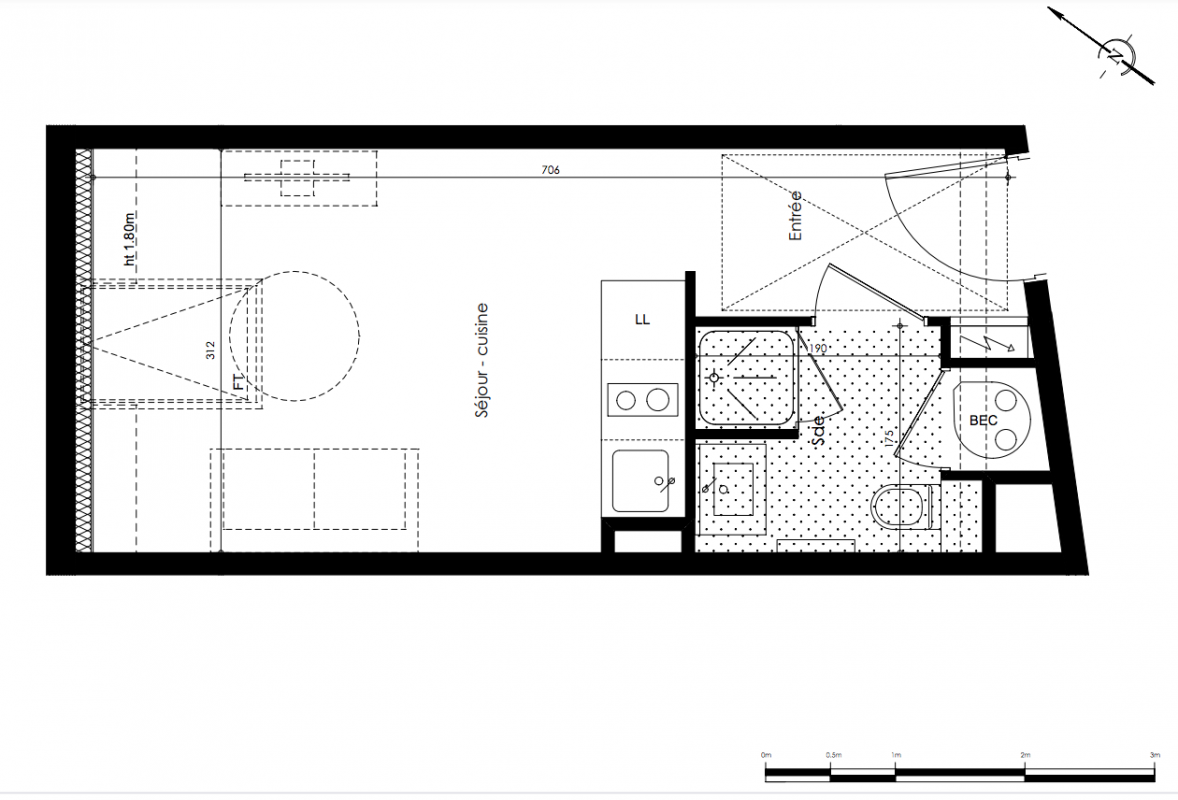 93 300€ Appt. Studio 15.88m2 0-RDC