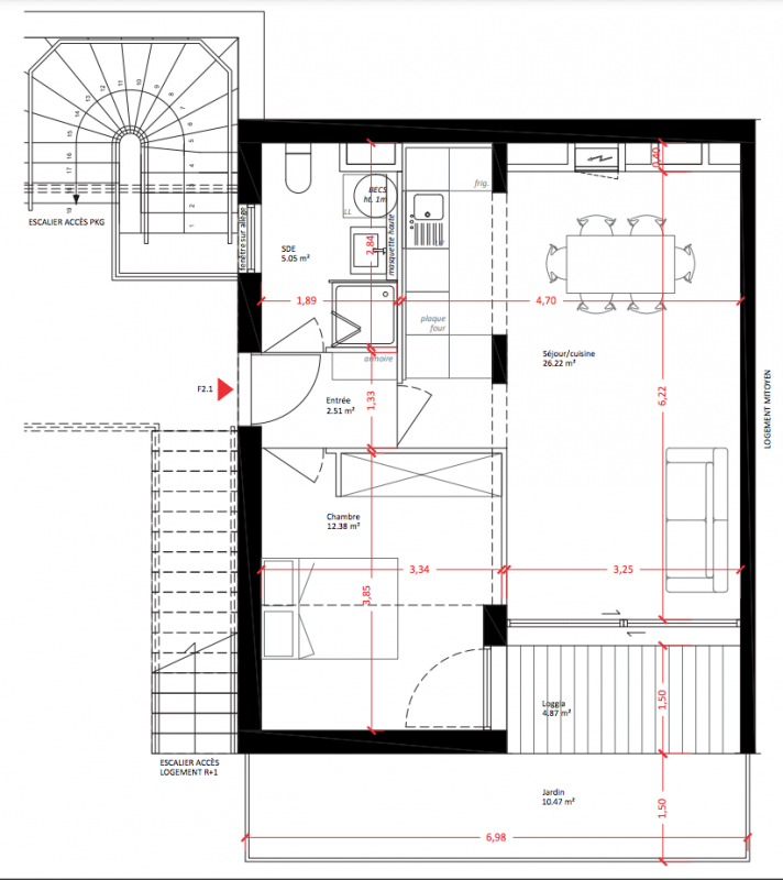 236 100€ Appt. T2 46.45m2 1er