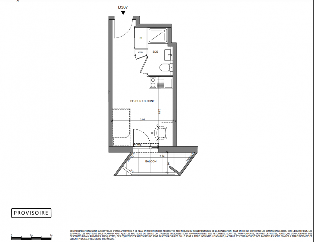 92 110€ Appt. Studio 19.03m2 3ème